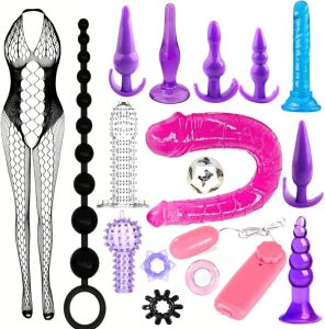 Explore uncharted territories of pleasure with the G-Spot Dildo Vibrator Anal Plug Beginner Set, a meticulously curated collection of 17 exciting pieces designed to elevate your intimate adventures. This all-encompassing set includes anal plugs, dildos, vibrators, bodysuits, penis rings, and penis sleeves, ensuring that whether you’re solo or with a partner, the possibilities for exploration are endless.