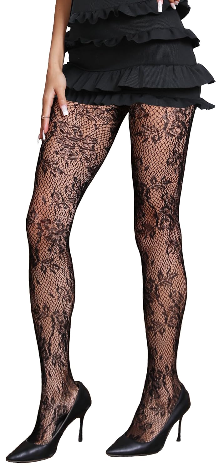 Women’s lace tights black offer a striking blend of elegance and boldness, featuring a captivating floral design that can instantly transform any outfit. Whether you’re dressing up for a party, preparing a striking Halloween costume, or simply wanting to make a fashion statement in your everyday attire, these tights serve as the perfect addition to your wardrobe. Their intricate patterns and unique textures add an undeniable touch of sophistication and allure to your overall look.
